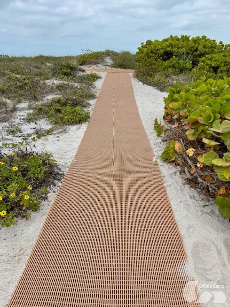 When installed at recreation centres and pools, access mats provide comfort and heat protection for those sitting or standing around the edge of the pool. Beach access mats are used to protect bare feet from hot tiles, sand, paving, or decking.
