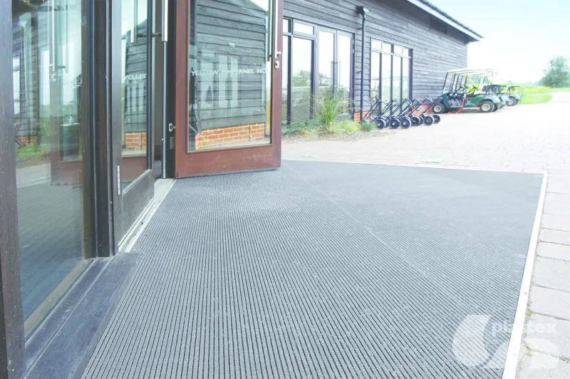 Slip-resistant, open-grid entry matting designed for high traffic areas.