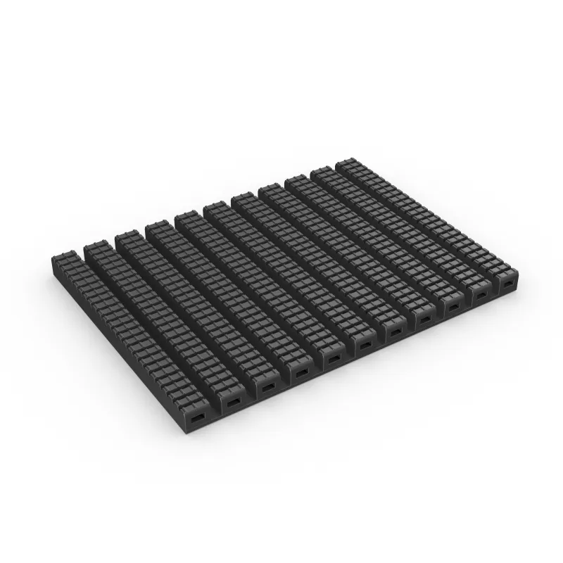 The ribbed pattern scrapes shoes and wheels clean, while the grid construction traps and collects debris, helping to reduce the amount of dirt walked into the building.