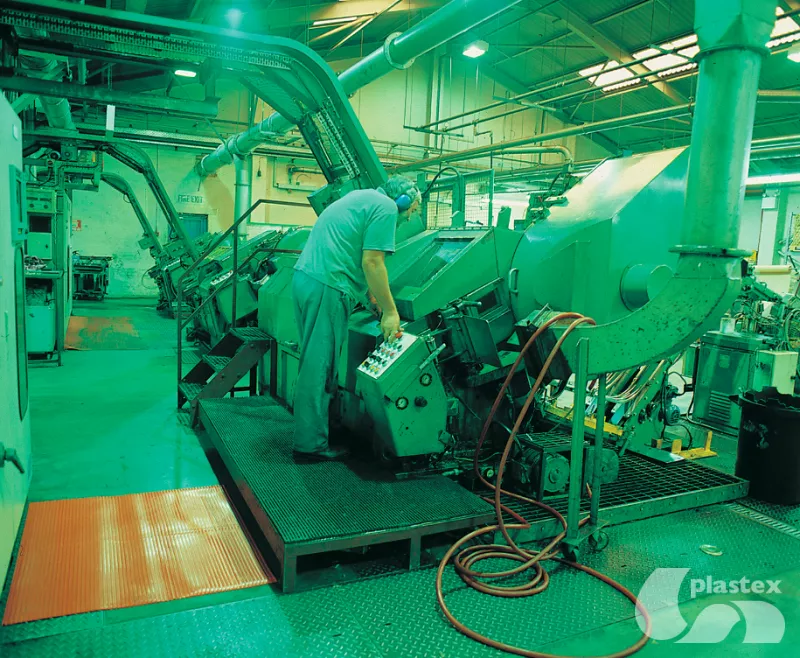 Pavimento estriado, ideal para entornos laborales y zonas de embalaje, donde a menudo hay que permanecer de pie.
