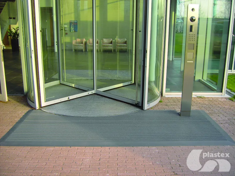 Tapis d'extérieur dont les brosses robustes retiennent un maximum de saleté.