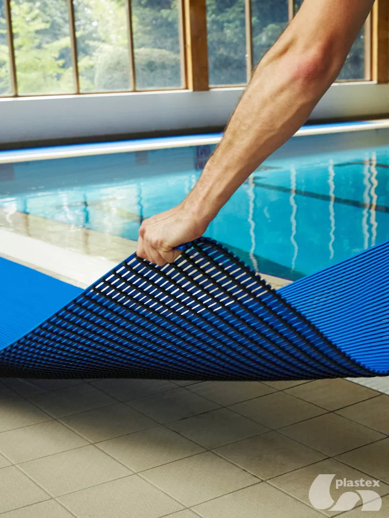 Il est essentiel d’assurer l’hygiène continue des sols pour pieds nus dans les environnements humides et mouillés. Tous les tapis Plastex contiennent des additifs antimicrobiens et antifongiques pour assurer une hygiène exemplaire, quelle que soit la fréquentation de votre piscine, jacuzzi, vestiaires et douches.
