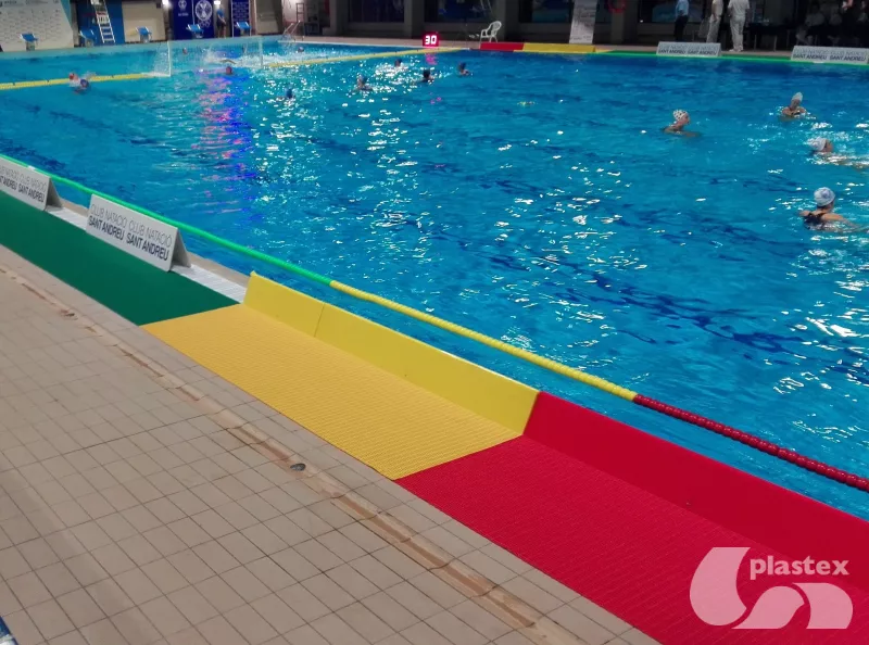 Sa surface structurée en fait un revêtement antidérapant, tandis que sa grille ajourée canalise l'eau et offre un excellent drainage, permettant au tapis de water-polo de rester une surface sécurisée pour les joueurs et les arbitres. Les propriétés antimicrobiennes et antifongiques permettent de préserver l'hygiène du tapis de piscine et de protéger les pieds nus.