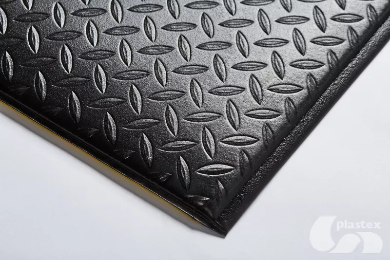 Une épaisseur de mousse de 14 mm offre un excellent amorti sous le pied, tandis que la surface à motifs de tôle larmée permet une adhérence renforcée sous le pied et en fait un revêtement certifié résistant à l'usure et aux perforations. Ce tapis anti-fatigue permet également d'améliorer la productivité du personnel travaillant en position debout.