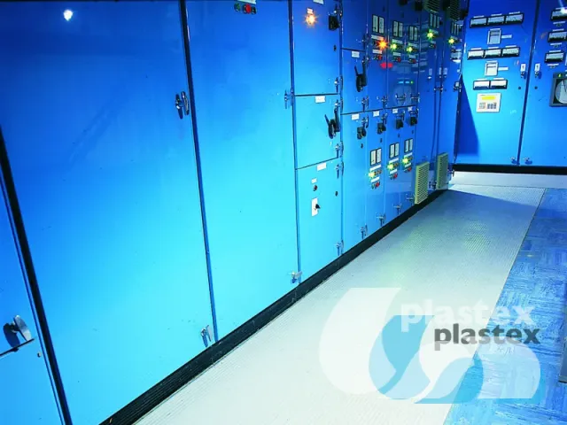 Heavy-duty matting with a textured surface that insulates from electrical shock.
