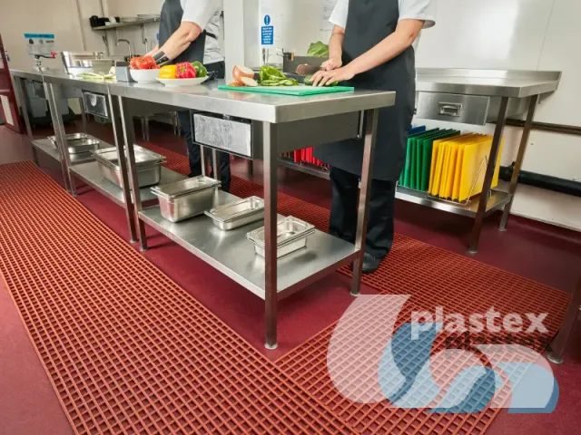 Look for a mat with an aggressive tread surface for extra grip underfoot and an open grid for excellent drainage. This winning combination will improve safety and help to remove spillages and debris from the working area before they can cause harm.
