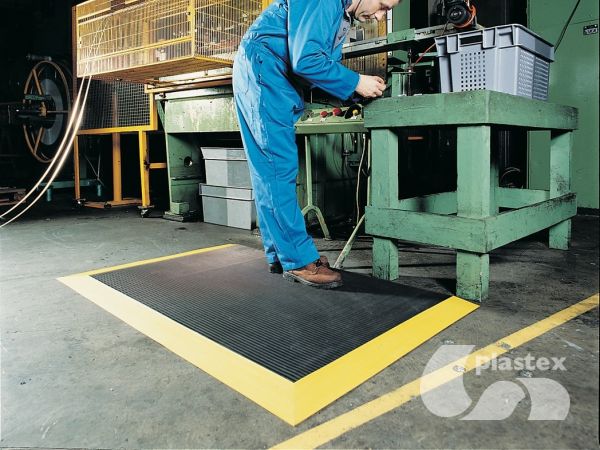 Our manufacturing mats are made using a two-layer construction for durability and resilience, and feature a diamond-tread surface for extra grip underfoot.