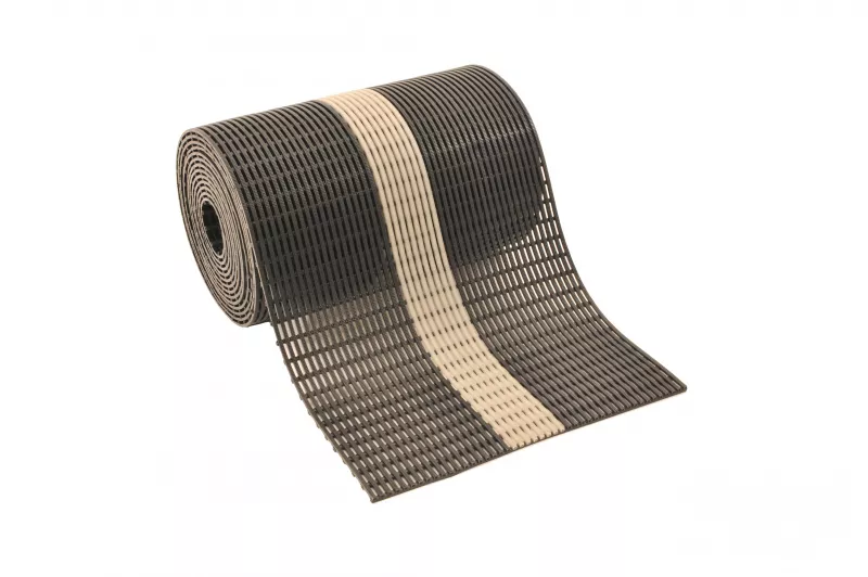 Certified slip resistant with a light-emitting band running down the center, Heronair Photoluminescent glows in the dark, making it the perfect matting to mark escape routes along walkways in case of lighting failure.